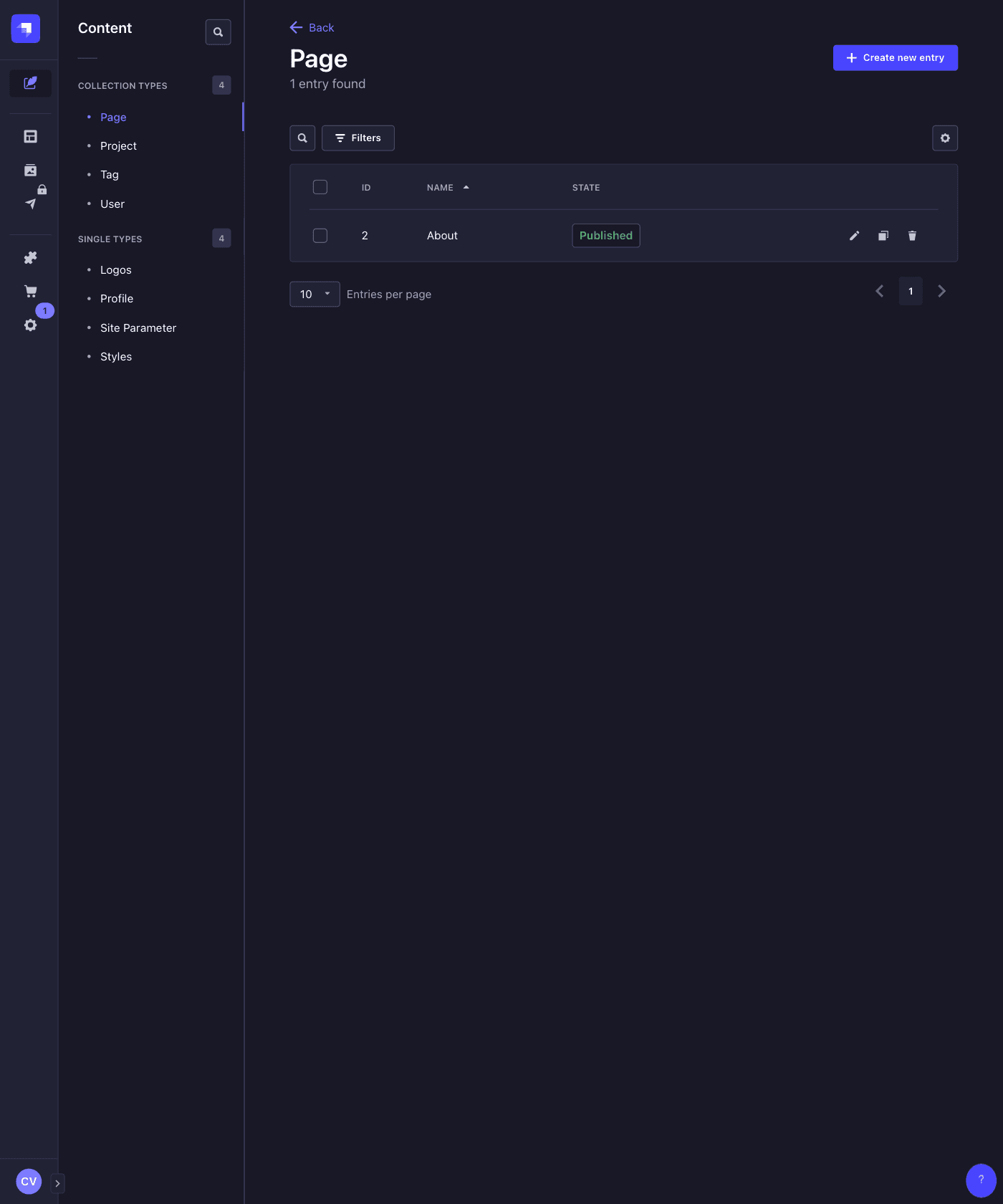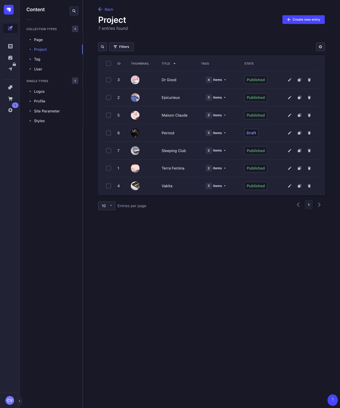 Un menu dédié pour la gestion des pages et des projets du portfolio